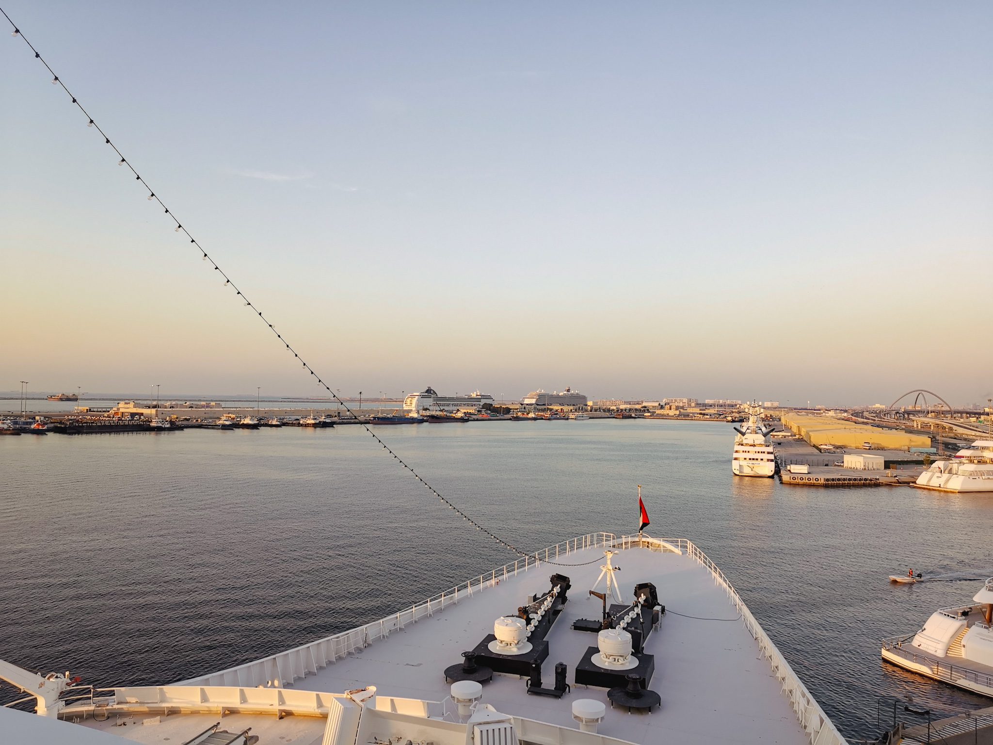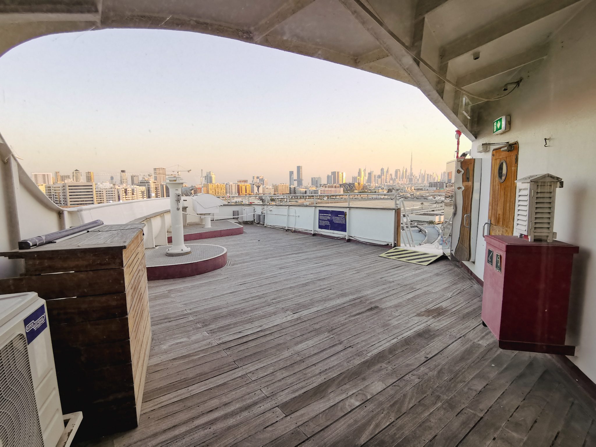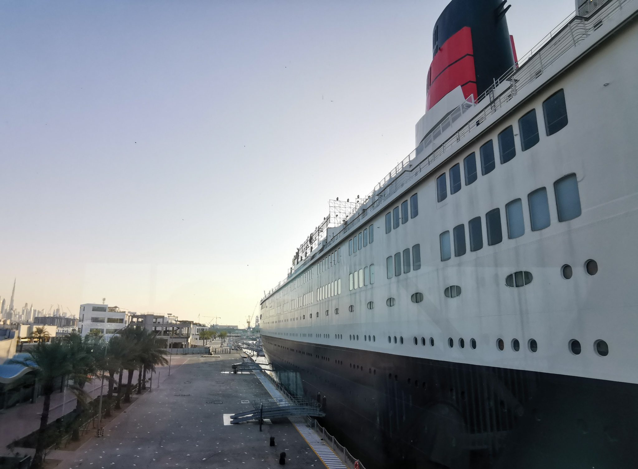 Eigentlich sollte das Schiff an einem neuen Anleger auf The Palm seine letzte Station finden. Anzutreffen ist die Queen heute aber in der Nähe des Kreuzfahrtterminals Port Rashid