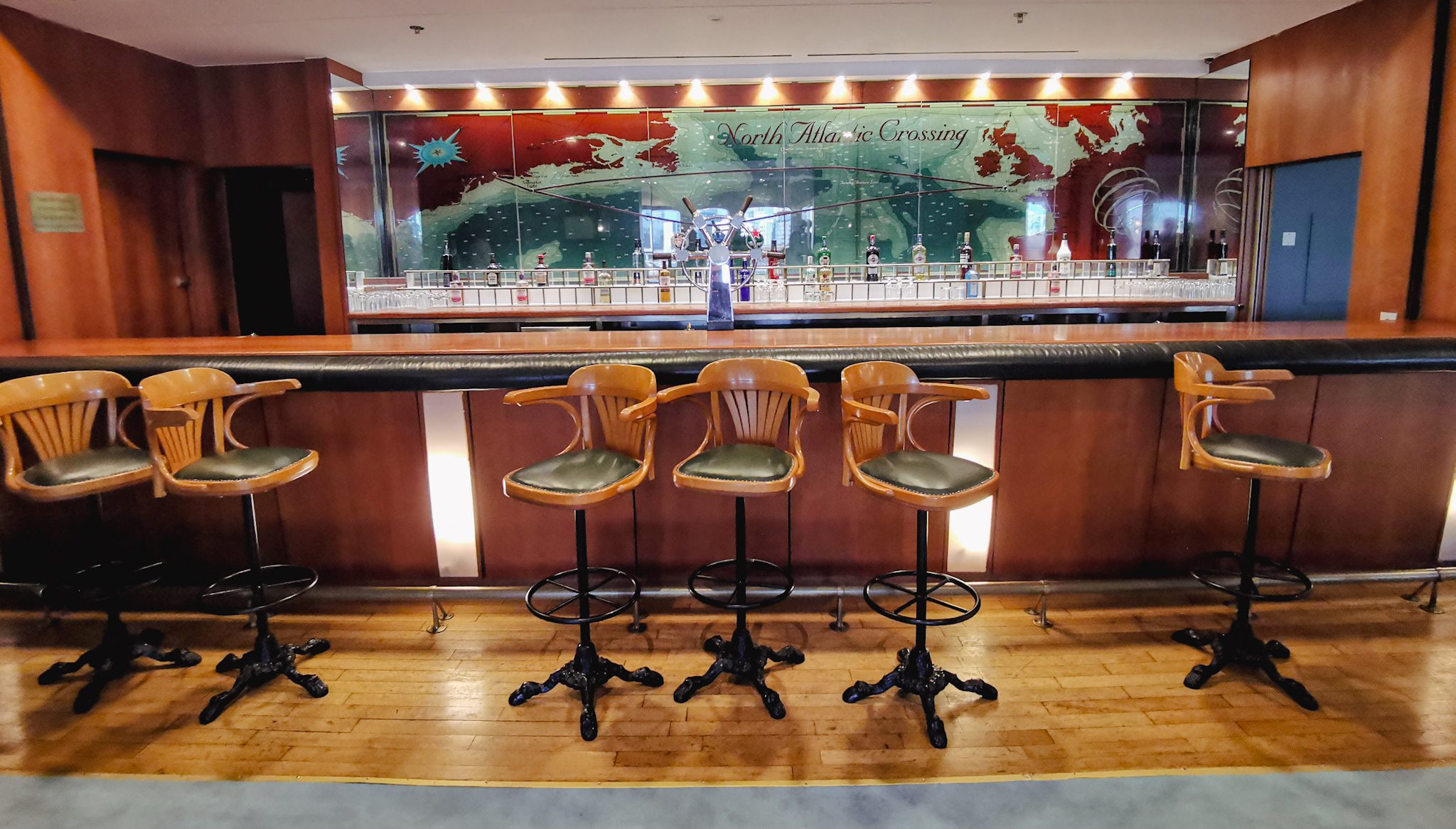 Lange vor moderner Unterhaltungsmöglichkeiten, wie dem Internet und den damit verbundenen Streamingdiensten und sozialen Medien gab es noch richtige Unterhaltung. Unterhaltung im eigentlichen Sinne konntest Du in den zahlreichen Bars und Clubs des Schiffes finden. Hier saßen Promis, wie Mick Jagger und konnten an der Theke live sehen, wie der Barmann auf einer Tafel die Position des Schiffes regelmäßig veränderte.