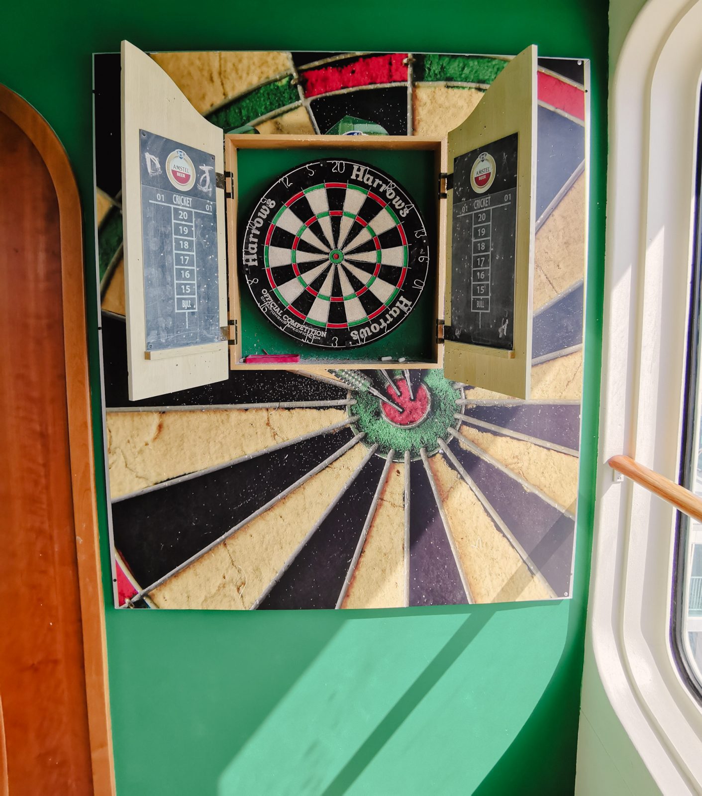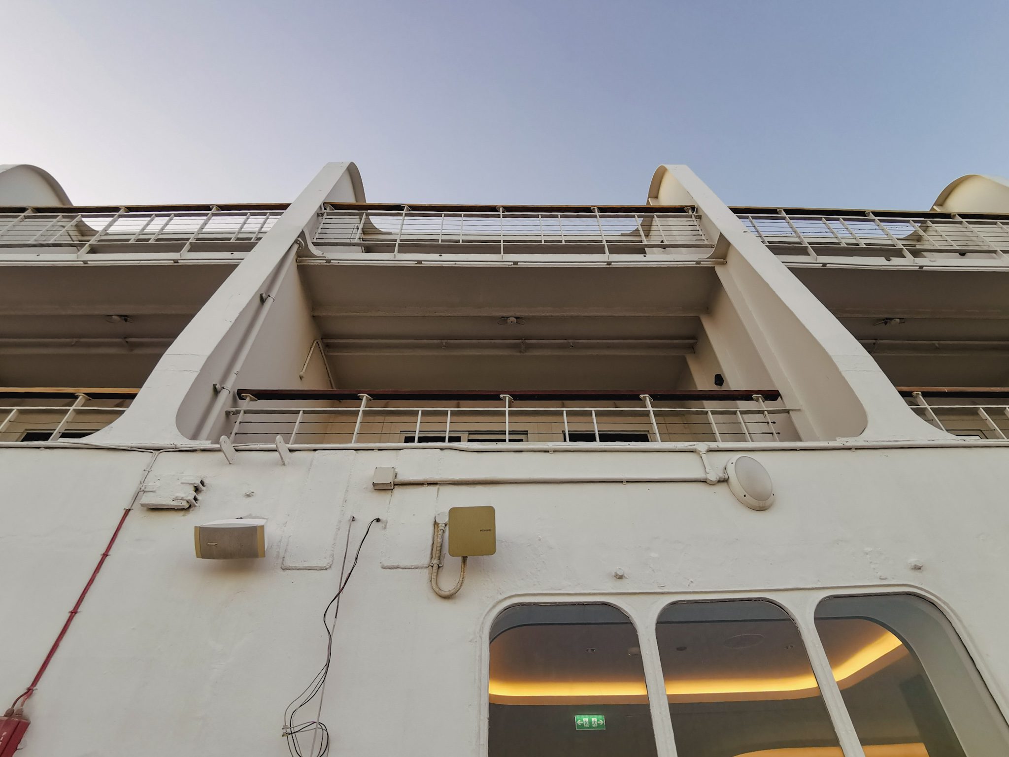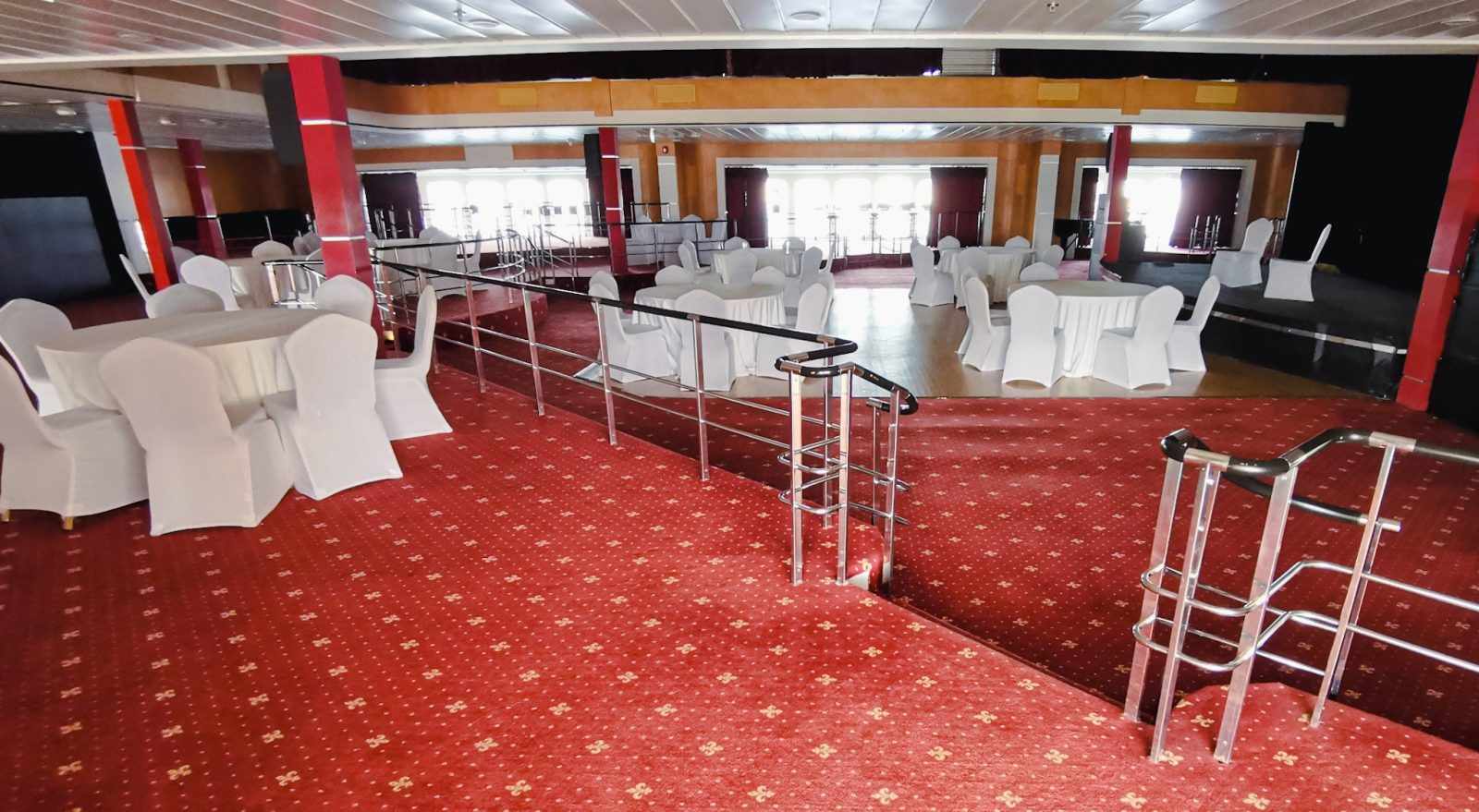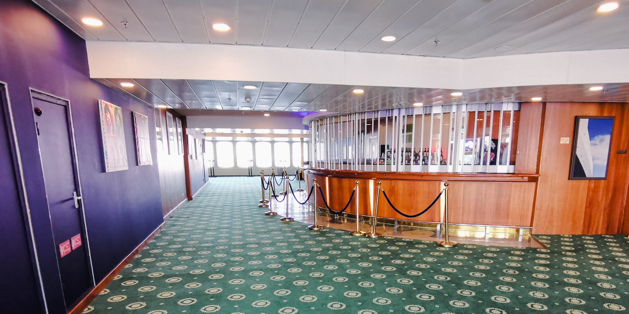 In Sachen Unterhaltung wird eher wenig geboten. Das kühle Fitnessstudio mit Pool im unteren Deck ist neben der vom Schiff ins Hafengebäude verlegten Bibliothek das einzige Entertainment.