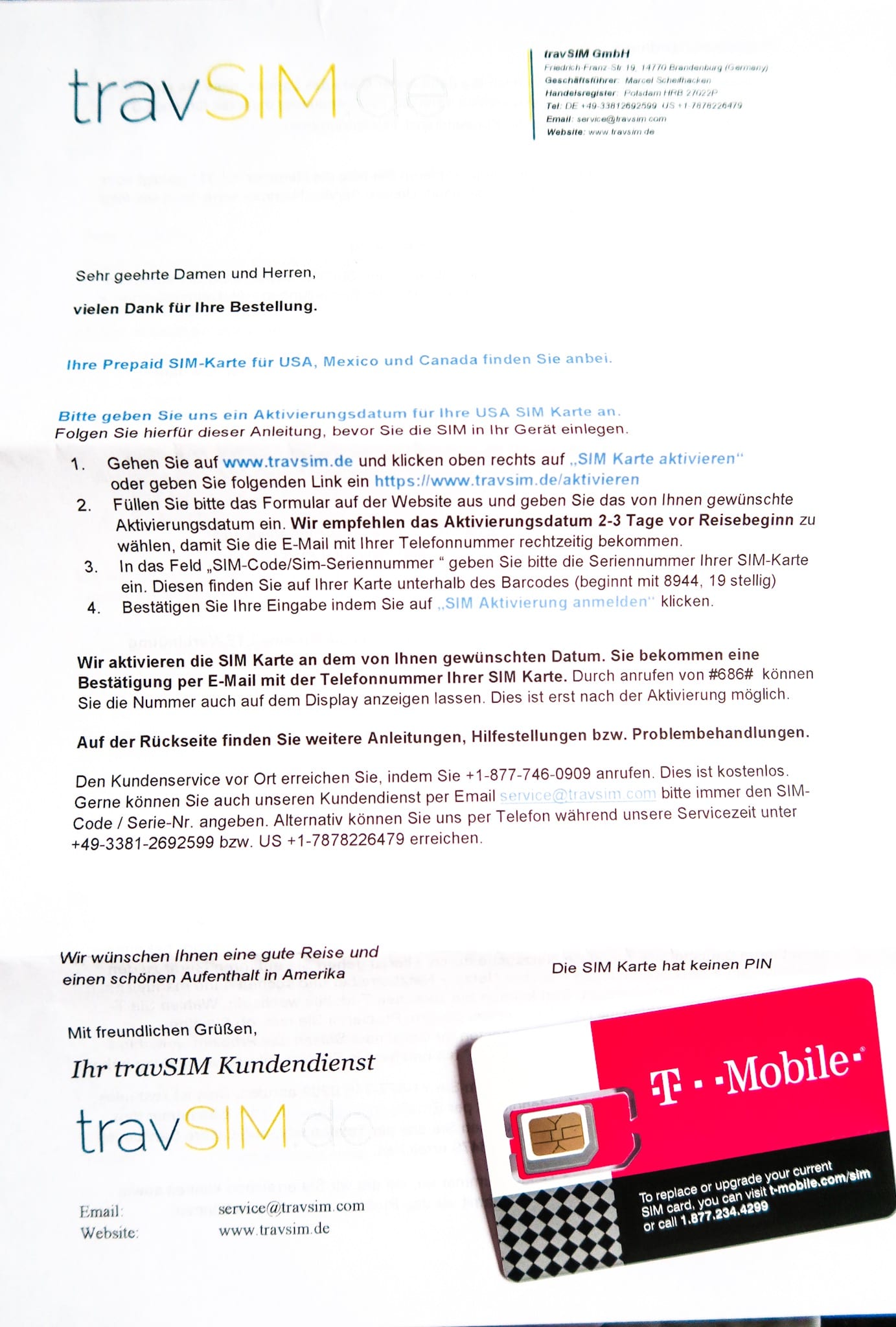Da travSIM nur zu deren Bürozeiten erreichbar ist, bitte die Karte bis spätestens Freitag 15h aktivieren. In meinem Fall tat ich es samstags erst und Montagmorgen funktionierte es erst. Für dringende Fälle gibt es eine englischsprachige Hotline rund um die Uhr.