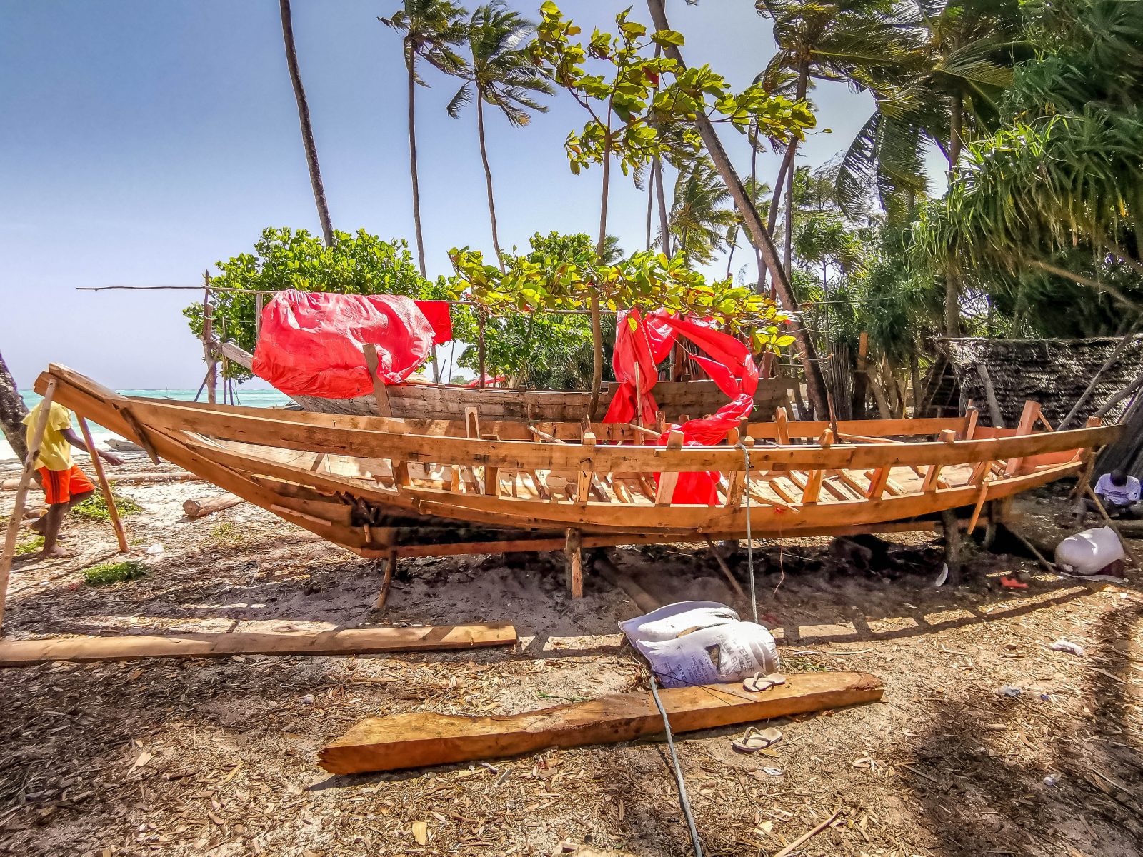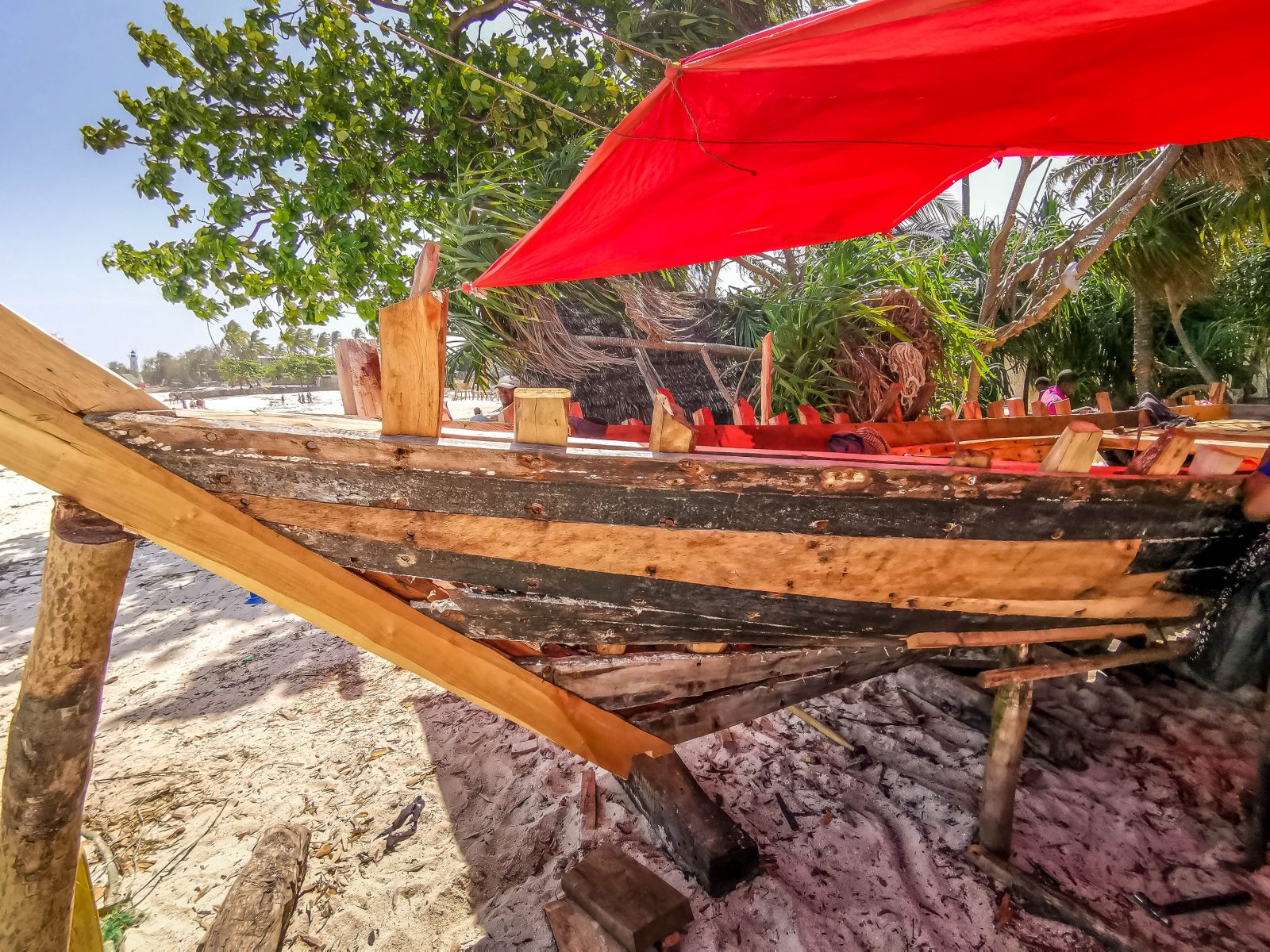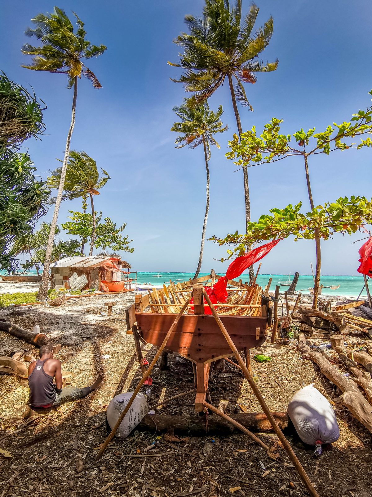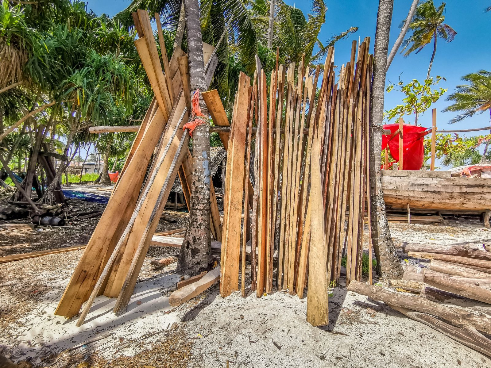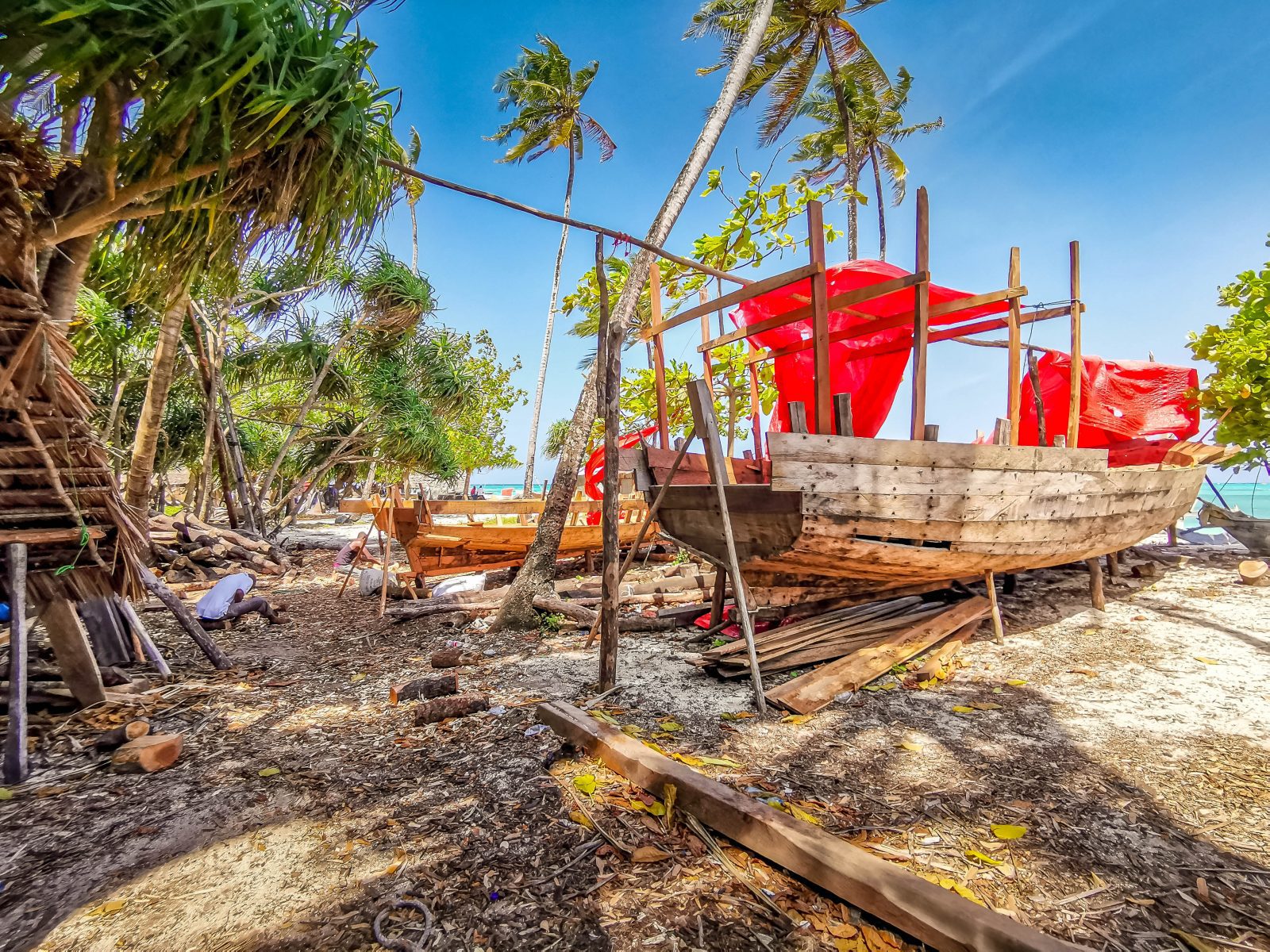 Die Werft am Strand dient sowohl zum Neubau als auch zur Werkstatt. Generell werden selbst bei einem Neubau möglichst viele alte Bauteile verwendet. Dies sieht man besonders gut an den Nägeln. Es ist faszinierend, mit welchen Mitteln die Bootsbauer ein so stabiles Schiff bauen. Das sehr harte Holz wird lediglich mit Hacken in Form gebracht. Das natürlich komplett ohne Messinstrumente, die Bootsbauer verlassen sich rein auf ihr Augenmaß und das ist sehr genau. Von außen sieht das Boot so aus, als hätte man eine vorgegebene Grundform, die letztlich mit lauter Holz-Puzzleteilen zusammen geschustert wird. Und eins muss man sagen, die Boote sind seetauglich. Aber das erfährst Du demnächst hier.