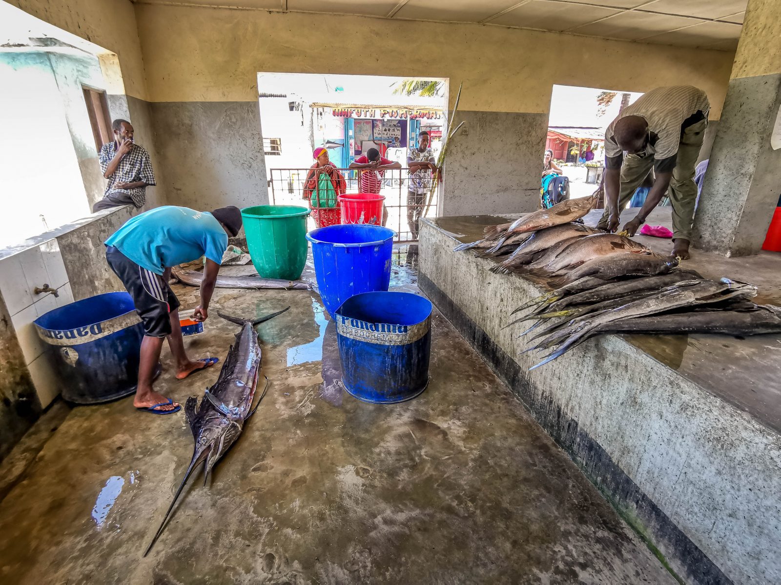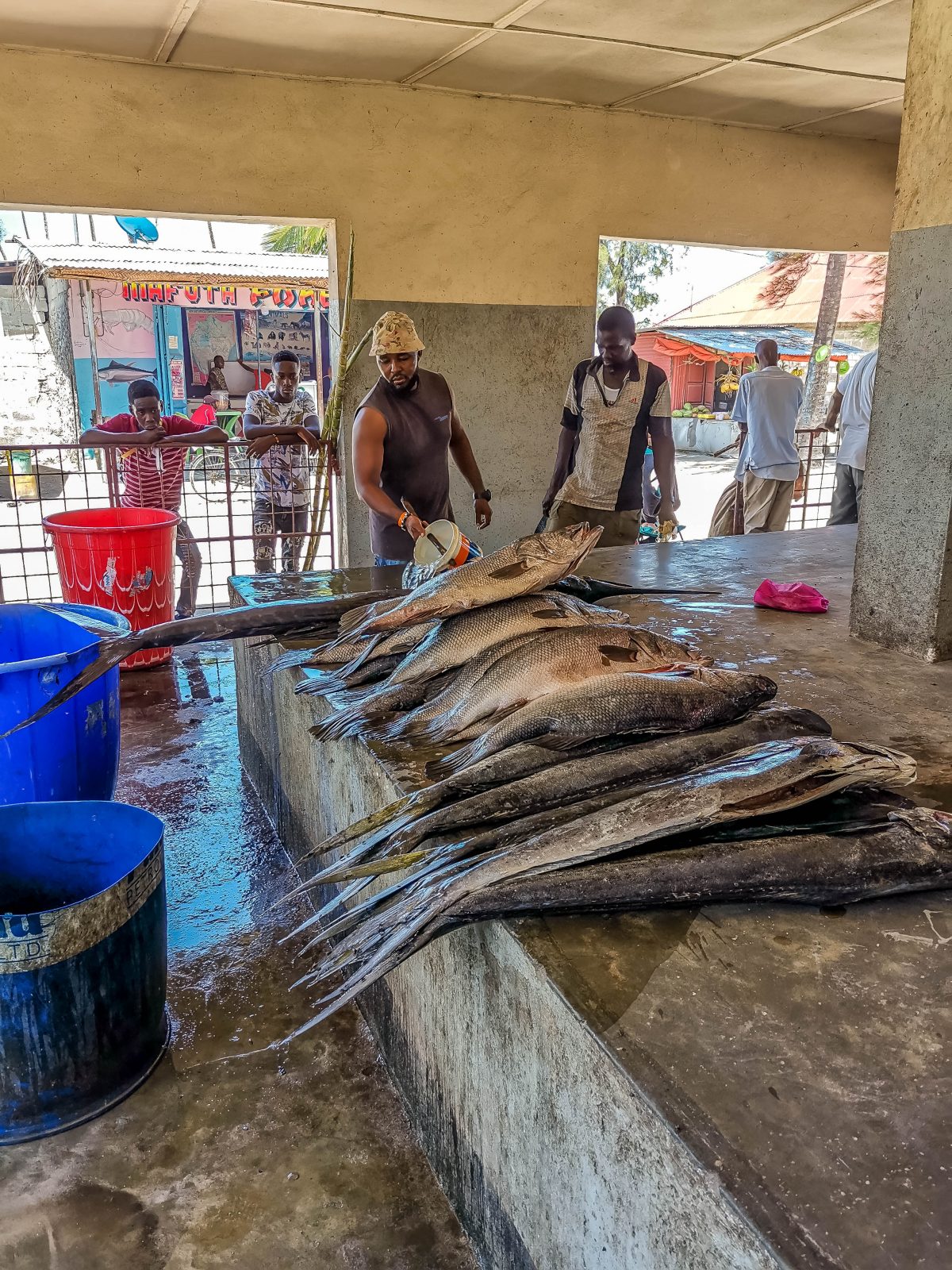 Der Fischmarkt in Nungwi hat nichts mit den vollautomatischen Fischbörsen in Europa zu tun. Hier wird praktisch direkt vom Schiff aus der Fisch den Händlern und Restaurants präsentiert. Auch wenn wir keine Fischesser sind, sieht dies schon beeindruckend aus, wie groß und vielfältig die Fische dort sind.