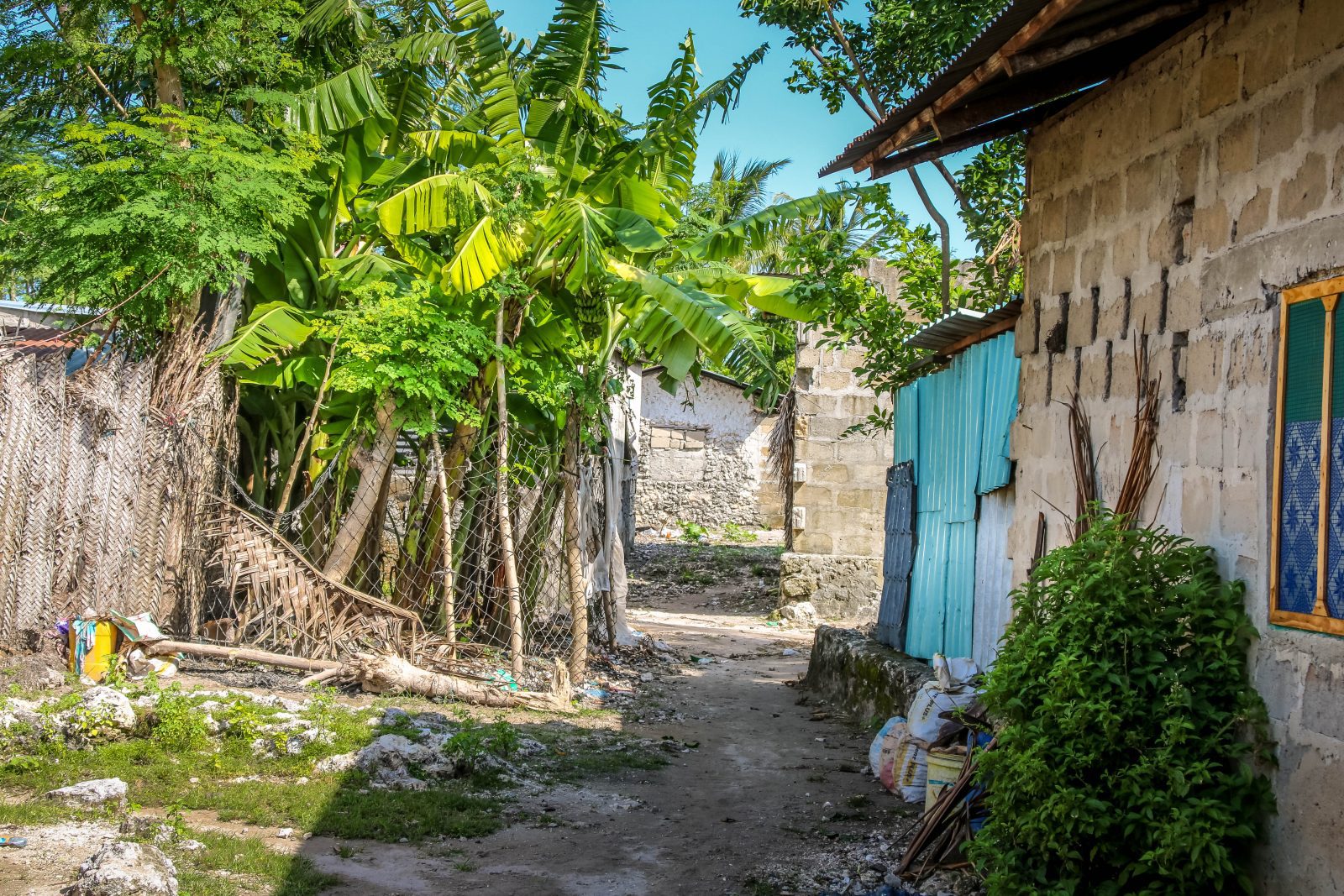 Früher baute sich jede Familie selbst ihr Zuhause. So entstanden die typischen Lehmhütten, die zusammen mit kleinen Steinen und Holz, Schilf oder Palmen gebaut wurden. Die Palmdächer sind bereits seit längerem durch Wellbleche verdrängt worden. Fensterscheiben gibt es wirklich nur in Hotels und ganz selten auch bei einigen wenigen internationalen Geschäftsniederlassungen. Strom ist inzwischen überall, jedoch benötigt man den Strom höchstens für eine Glühbirne oder das Handy zu laden. Wassernotstand gibt es nicht. Die Regierung versorgt Häuser ohne eigenen Anschluss mit zentralen Wasserausgabestellen. Abwasserprobleme gibt es kaum, da man sich gewöhnlich im Meer wäscht oder ein wenig Geschirr mit wenigen Litern spült.
