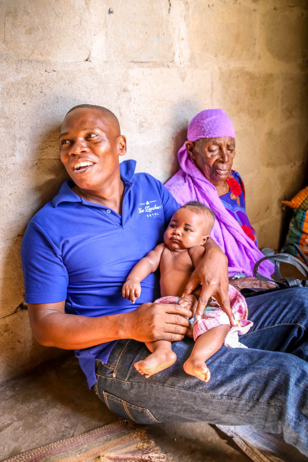 Nzori gibt sich bei der Tour Mühe, seinen Gästen das authentische Sansibar zu zeigen. Dabei wird ganz ungeschönt der Alltag seiner Familie und lokaler Handwerker gezeigt. Zunächst einmal stellte er uns seine Familie in ihrem Haus vor. Natürlich wurde uns stolz der jüngste Nachwuchs präsentiert. Direkt fällt auf, dass trotz simpler Lebensverhältnisse, das Höchstalter der Dorfbewohner sehr hoch ist. In seiner Familie ist die älteste Person 106 Jahre alt. Besonders interessant ist der Fakt, dass sie noch bis vor wenigen Jahren täglich auf dem Feld gearbeitet hat.