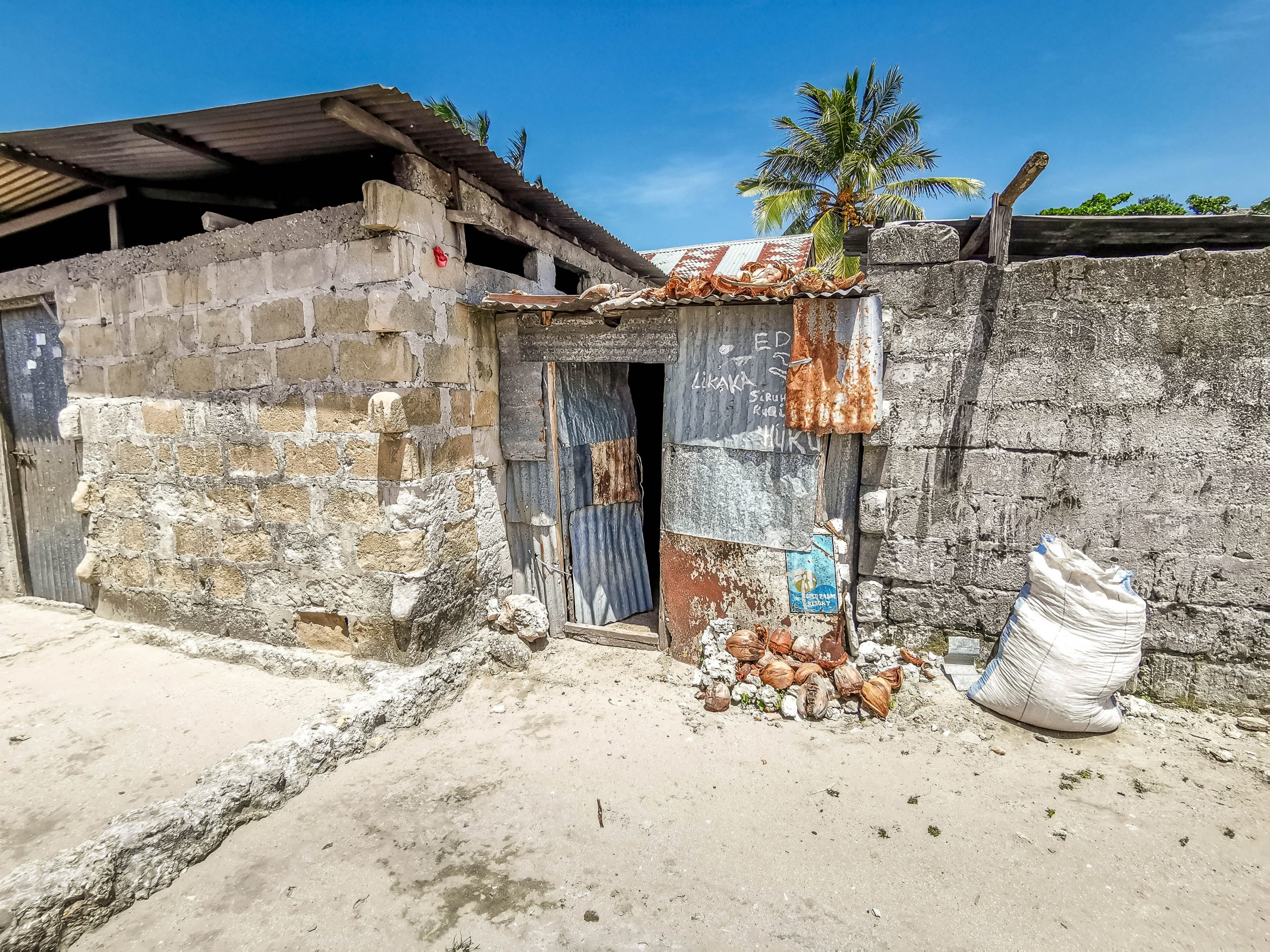 Früher baute sich jede Familie selbst ihr Zuhause. So entstanden die typischen Lehmhütten, die zusammen mit kleinen Steinen und Holz, Schilf oder Palmen gebaut wurden. Die Palmdächer sind bereits seit längerem durch Wellbleche verdrängt worden. Fensterscheiben gibt es wirklich nur in Hotels und ganz selten auch bei einigen wenigen internationalen Geschäftsniederlassungen. Strom ist inzwischen überall, jedoch benötigt man den Strom höchstens für eine Glühbirne oder das Handy zu laden. Wassernotstand gibt es nicht. Die Regierung versorgt Häuser ohne eigenen Anschluss mit zentralen Wasserausgabestellen. Abwasserprobleme gibt es kaum, da man sich gewöhnlich im Meer wäscht oder ein wenig Geschirr mit wenigen Litern spült.