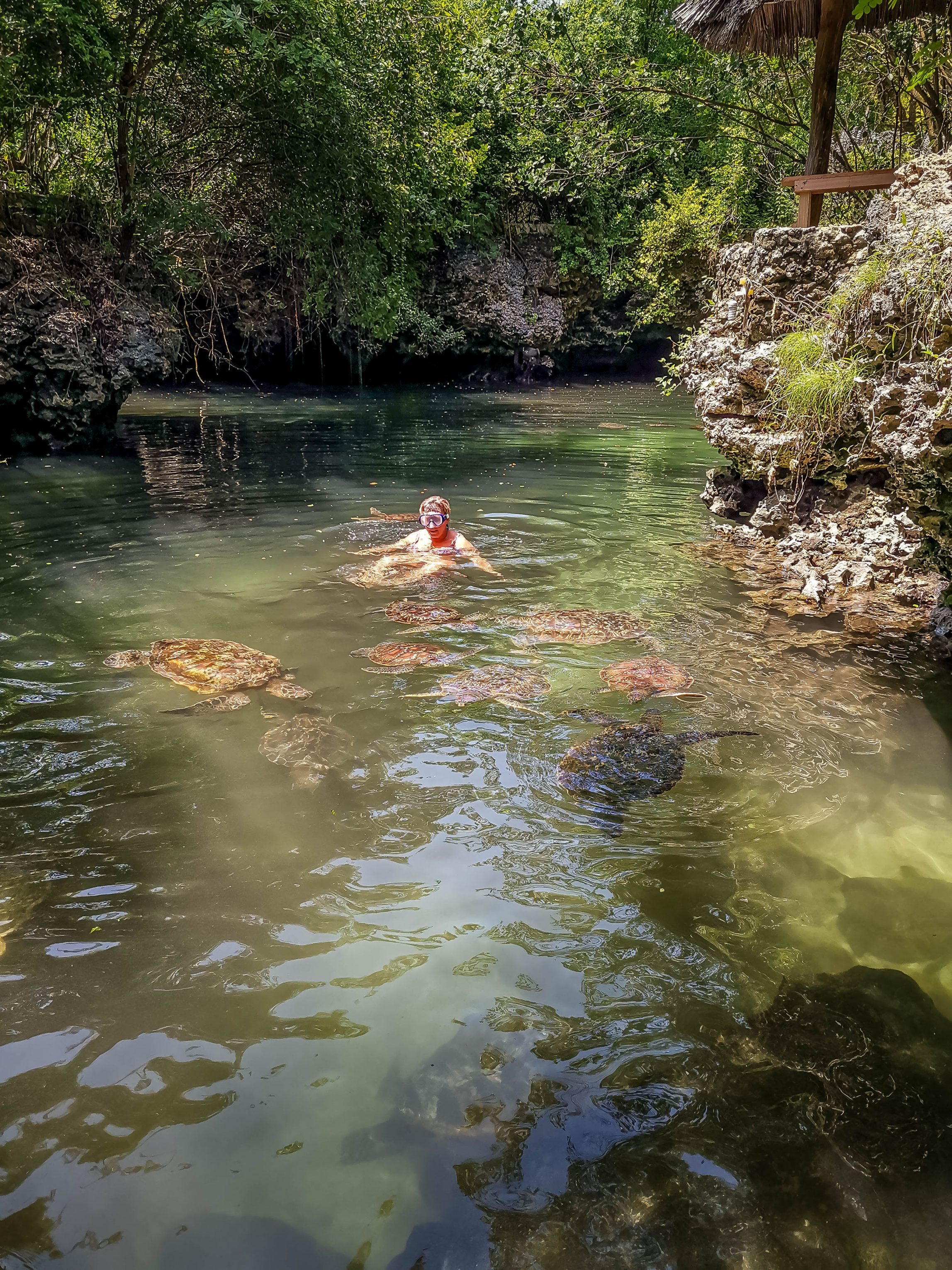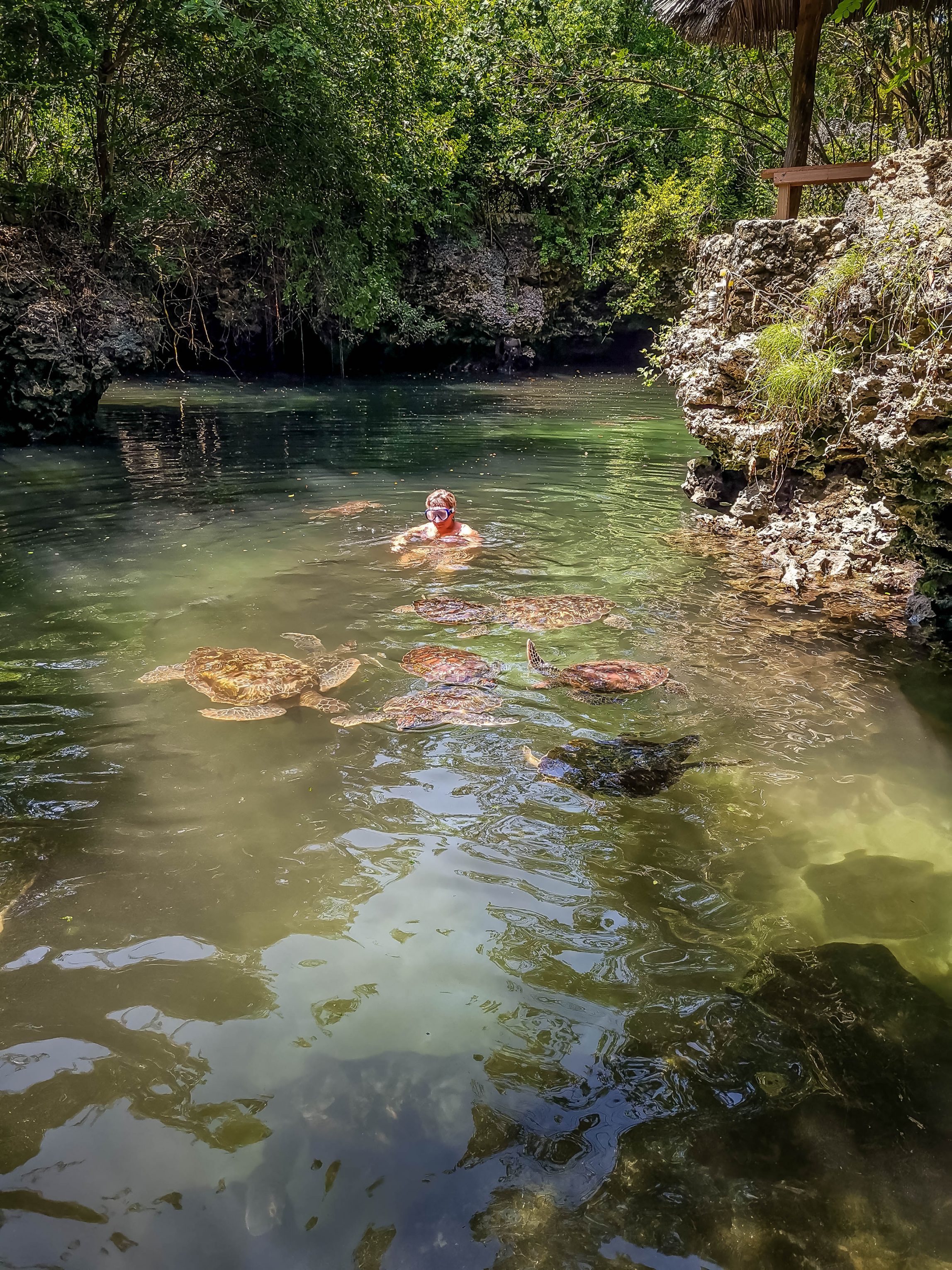 Die Lagune ist unterirdisch mit dem Meer verbunden. Verletzte Schildkröten, etwa durch Schiffsschrauben oder versehentlich gefischt, werden hier aufgepäppelt und später wieder ins Meer entlassen. Die Eintrittsgelder sind in der Tour enthalten.