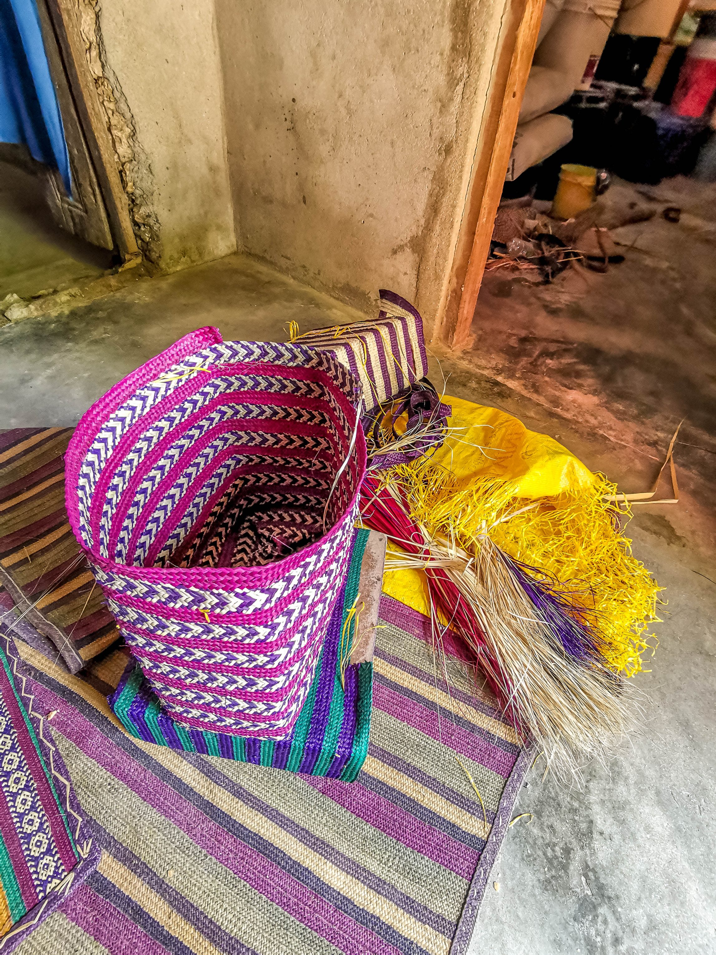 Nach etlichen Minuten des harten Arbeitens wurde Petra erlöst. Letztlich bekamen wir zu unserem Abschied im Hotel diese Tasche von Nzori geschenkt. Wofür Petra Stunden bräuchte, benötigte die routinierte Flechterin nur wenige Sekunden…