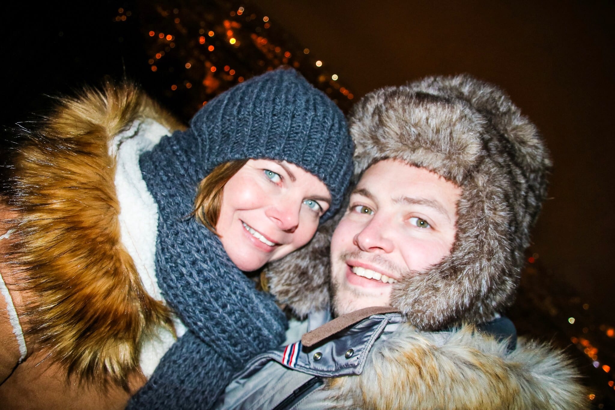 Die Sonne ist schon lange untergegangen, doch der Romantik tut das keinen Abbruch. Die Dächer der Stadt sind mit einer glitzernden Schneehaube überzogen, wunderschön, so schön, dass ich die Kälte kurz vergesse. Michael fotografiert die Szenerie, wie eigentlich den ganzen Abend schon. Was ein Glück, denn meine Hände haben mit meinen Manteltaschen spontan den Bund fürs Leben geschlossen.