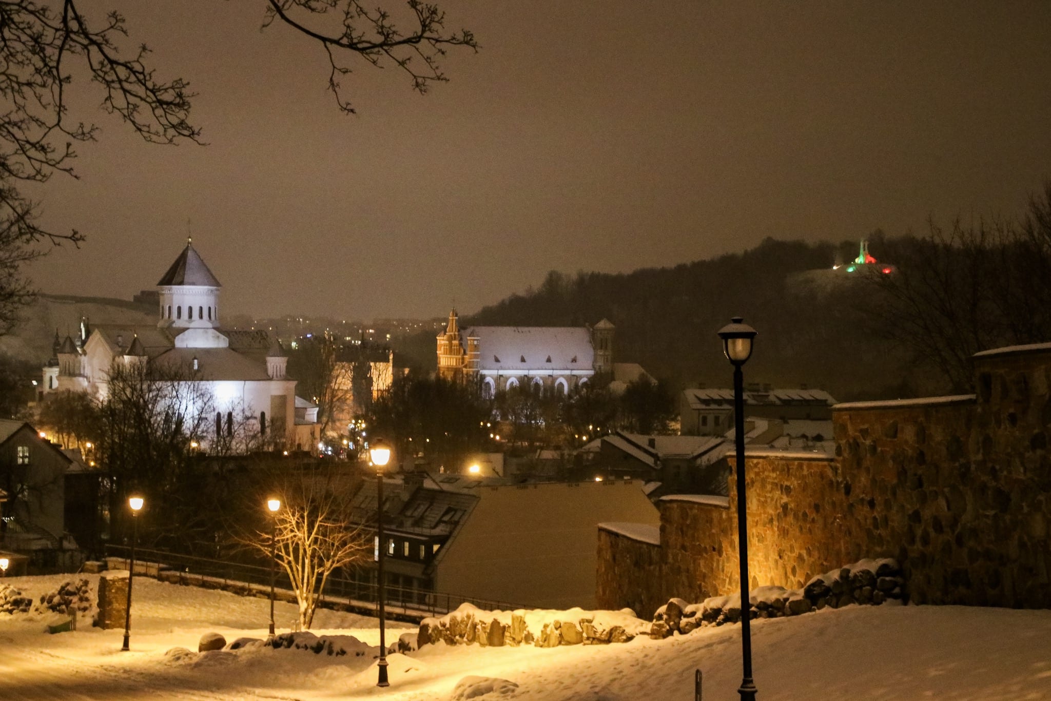 Bisher haben wir Vilnius (zu Deutsch Wilna) nur im Dunkeln erlebt. Wir starteten um 13 Uhr und landeten um ca. 17 Uhr. Das dürftige Tageslicht bei der Ankunft am Flughafen, bis zur Übernahme des Mietwagens und die anschließenden Fahrt zum Hotel, zählt einfach nicht.