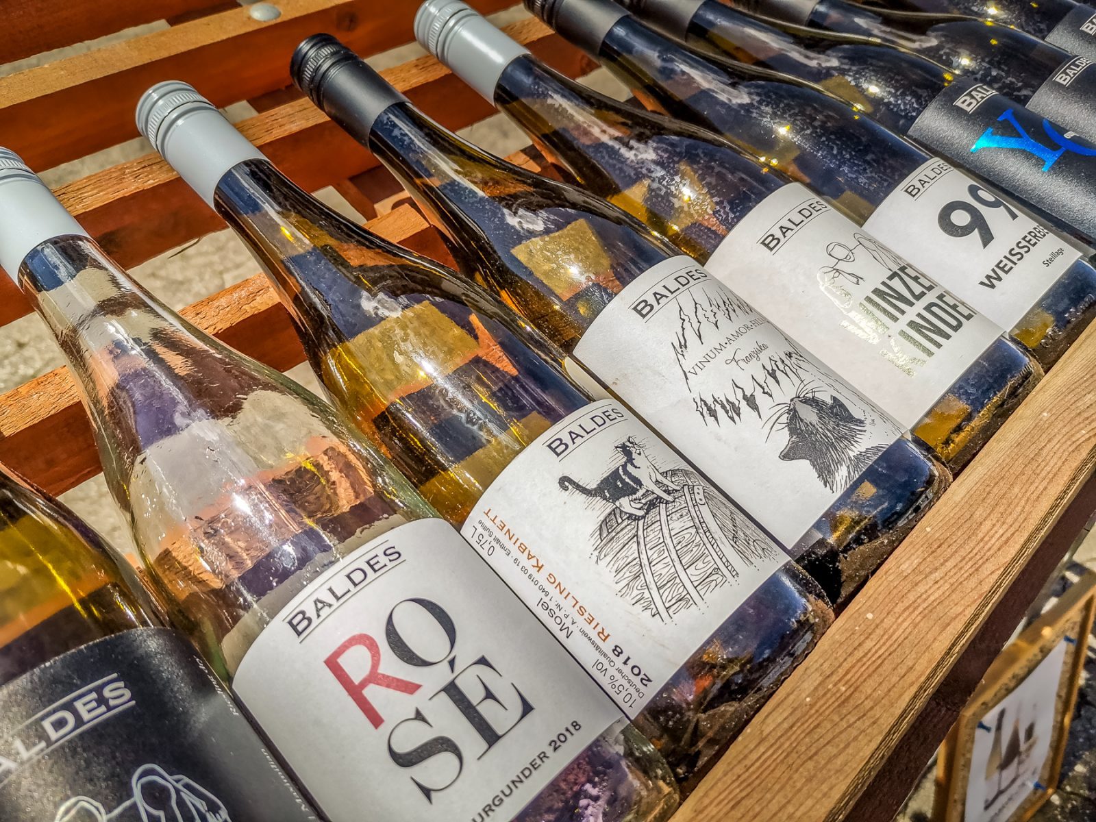 Bestimmt erwartest Du von einem Weingut große Gehöfte, zahlreiche Landmaschinen und überall stehen Fässer und Flaschen rum… Ganz anders beim Weingut Baldes. Fast unscheinbar kommt das Mehrfamilienhaus in zweiter Reihe am Moselufer daher. Würden keine Flaschen im Verkaufsständer vor der Tür stehen, würdest Du niemals in Erwägung ziehen, dass es hier überhaupt Wein gibt. Doch genau dieses unscheinbare charakterisiert auch die Weine der Familie. Man konzentriert sich eben mit viel Hingabe und Fleiß auf das eigentliche, nämlich guten Wein anzubauen.