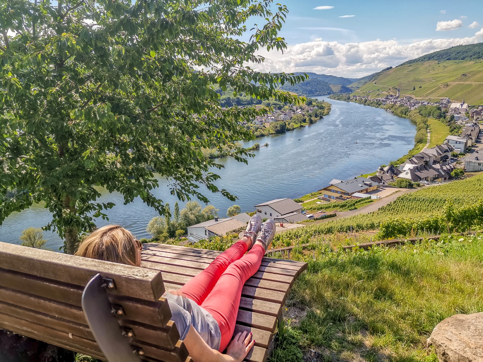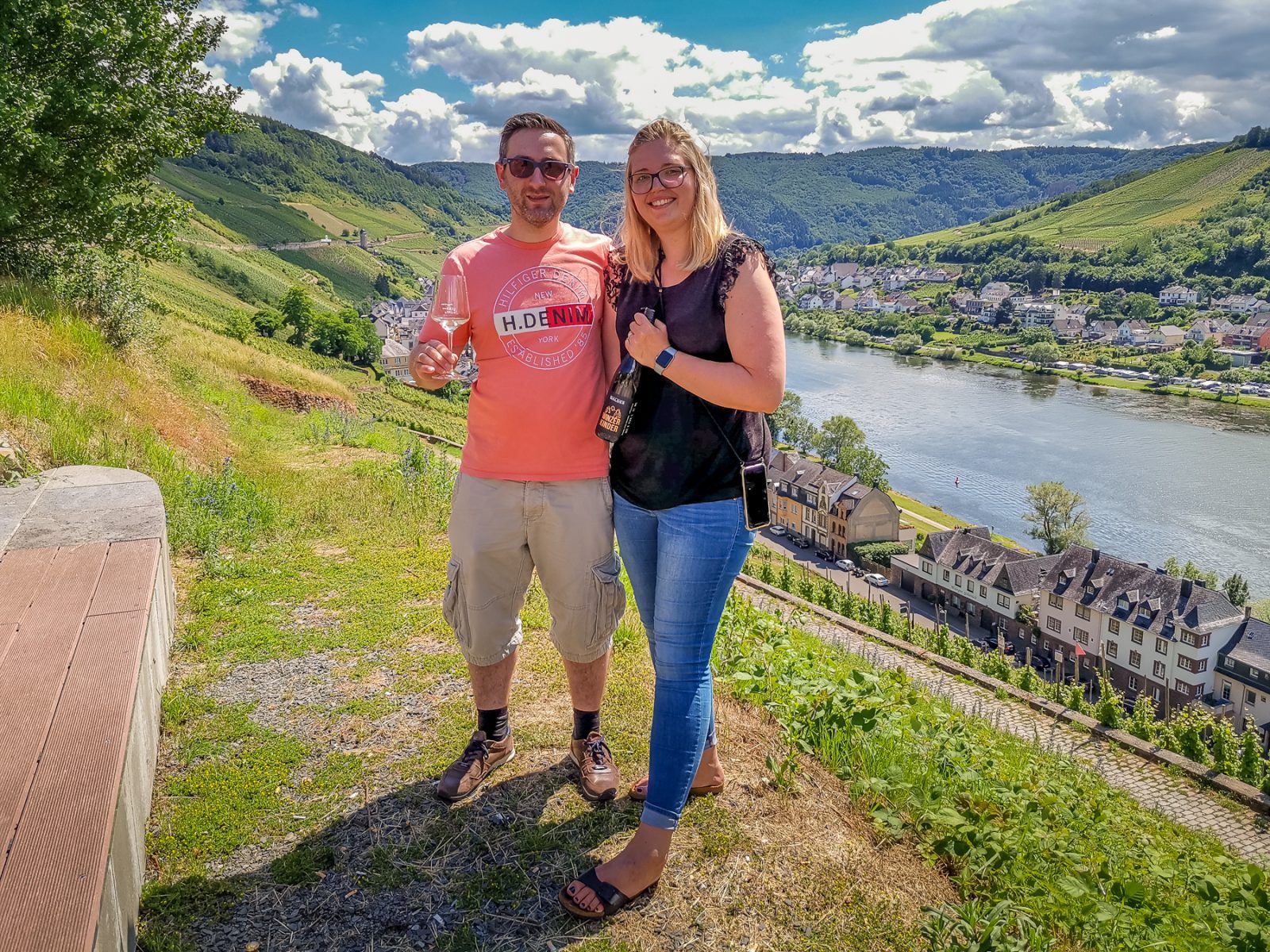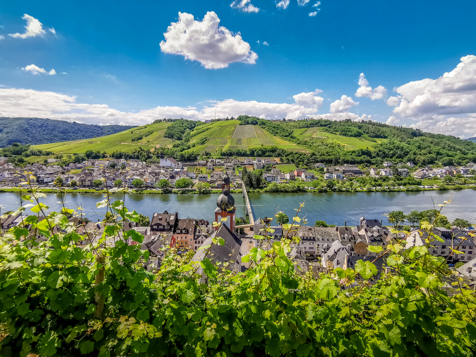 Es freute uns riesig, dass es endlich mal klappte. Ein schöner heißer Sommertag in den ansonsten tristen Coronazeiten. Gegen Mittag erreichten wir das idyllische Moseltal, genauer gesagt, den Zeller Stadtteil Kaimt, der durch eine Fußgängerbrücke direkt mit der Altstadt von Zell verbunden ist.